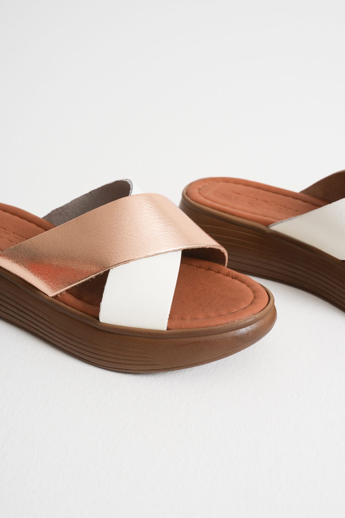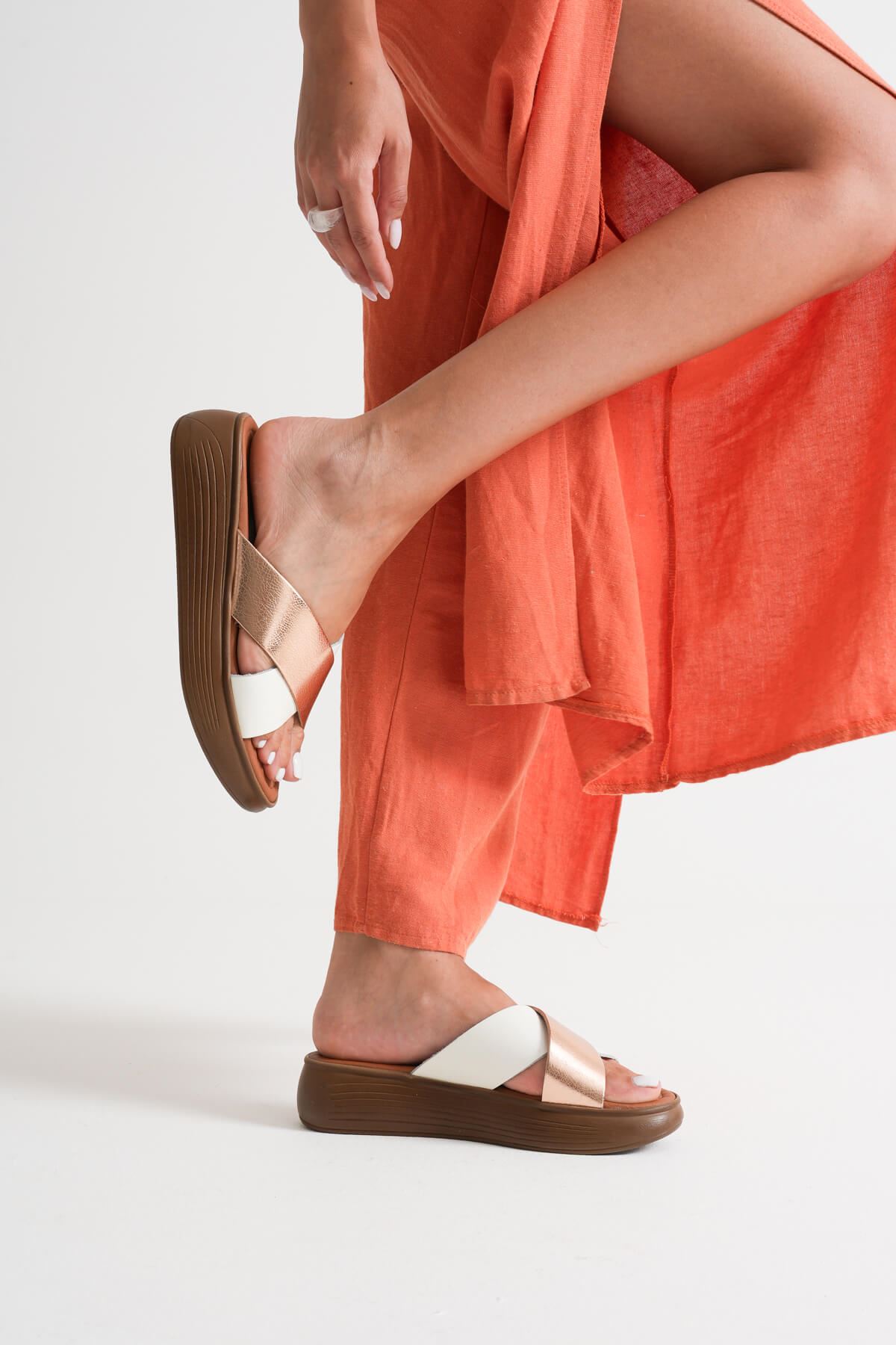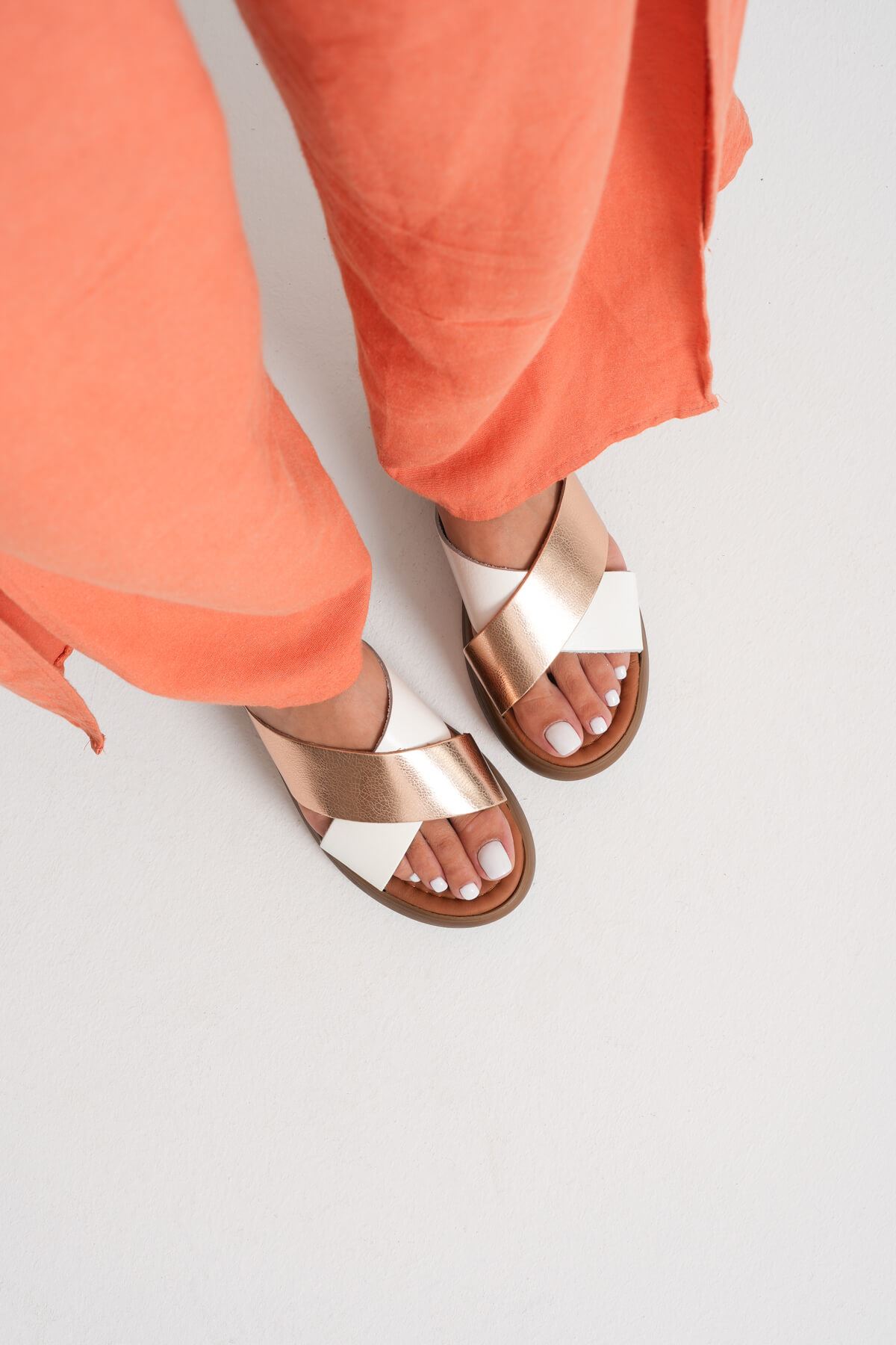 Günlük konforun, zamansız bir sadelikle birleştiği bu tasarım; her adımda dengeli, her bakışta rafine bir duruş yaratır. Sade tasarımın natürel hissiyle, yaz günlerinde hem özgürlük hissini hem de stilinden ödün vermeme kararlılığını taşırsın.