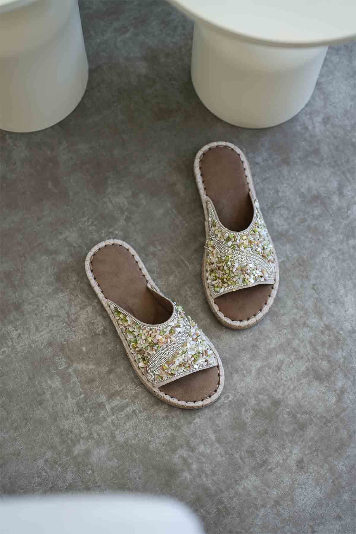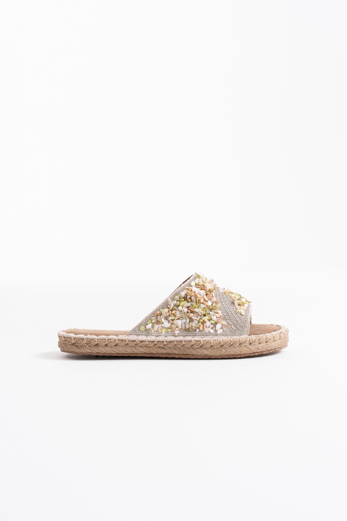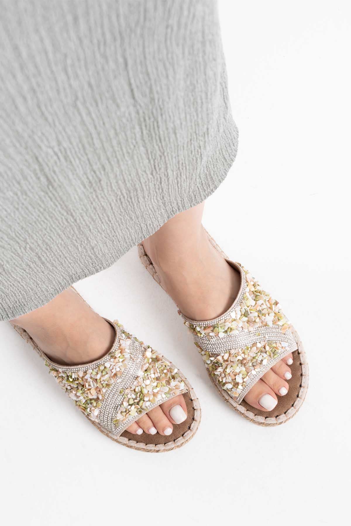 Soly Kadın Taş İşlemeli Şık Günlük Rahat Terlik - Bej